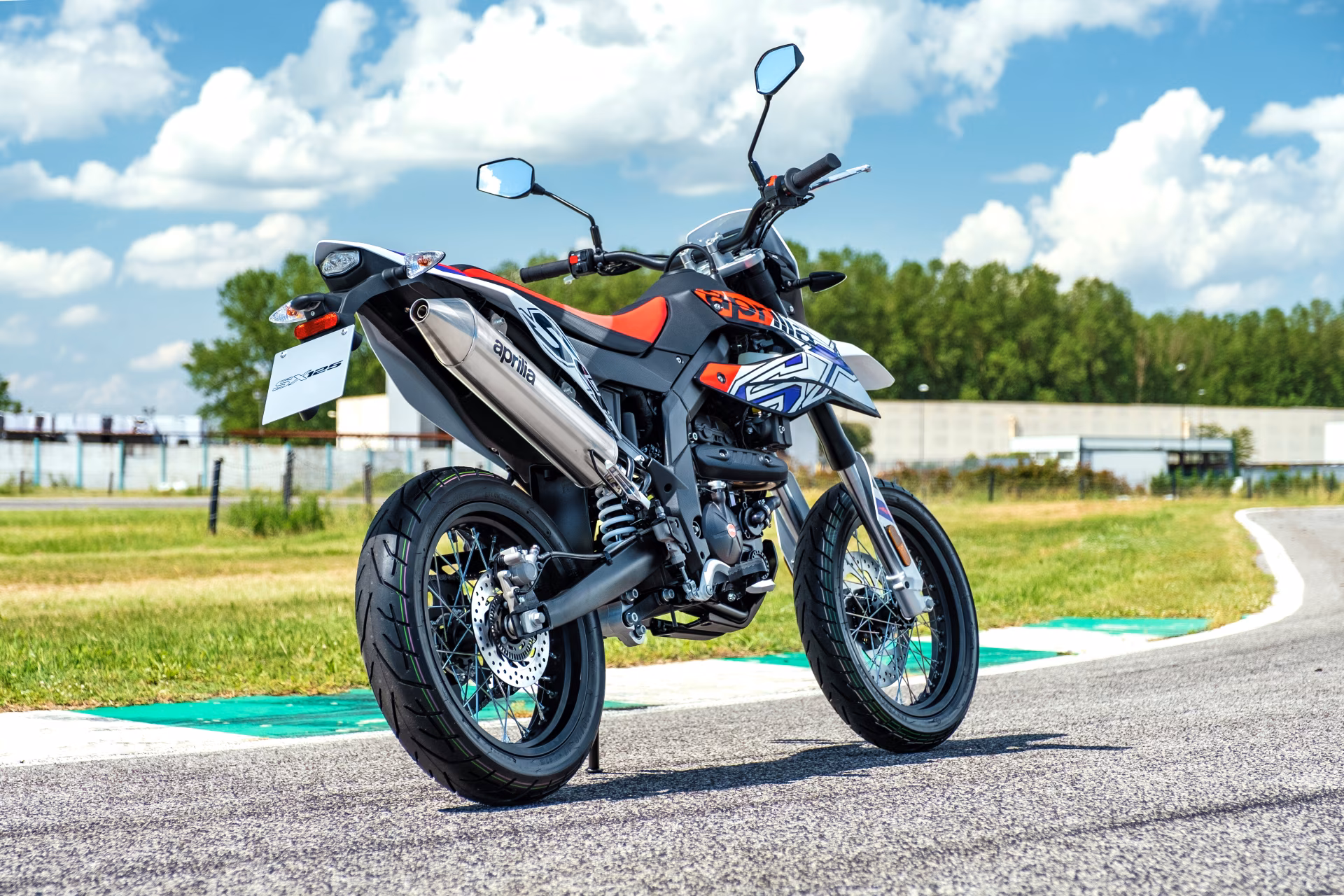 Aprilia SX je vybavena 17″ koly a sportovními pneumatikami velkých rozměrů – 100/80-17″ a 130/70-17″ – pro maximální přilnavost za všech podmínek.