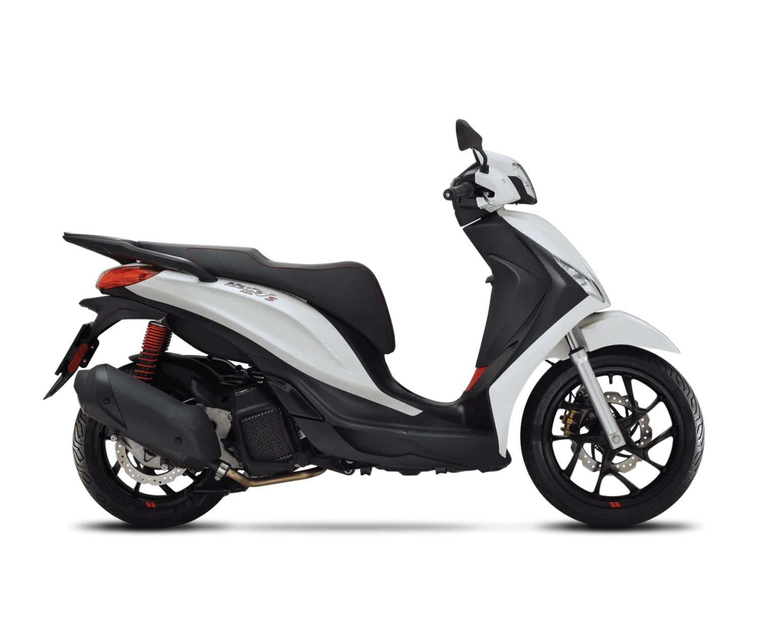 Hbitý a agilní model Piaggio Medley S 125 i-get zaujme svým výkonem a sportovním vzhledem. Obloukovitě tvarovaná přední část dokonale doplňuje zúženou zadní část a vytváří tak vzhled, který je dynamičtější a funkčnější než kdykoli předtím. Přední maska a řídítka prošly moderní proměnou díky novému full-LED světlometu a pokročilému LCD přístrojovému panelu, které jsou dokonalou kombinací stylu a funkčnosti. Z hlediska výkonu je k dispozici zcela nový čtyřtaktní, čtyřventilový, kapalinou chlazený motor Piaggio i-get splňující normu Euro 5 se systémem Start&Stop. Jeho výkon 11 kW z něj činí jeden z nejvýkonnějších v segmentu střední třídy, aniž by docházelo ke zvýšení spotřeby paliva. Matně černá povrchová úprava, prvky v ohnivě červené barvě a tvar sedla dávají jasně najevo, že se skutečně jedná o sportovní motocykl.
