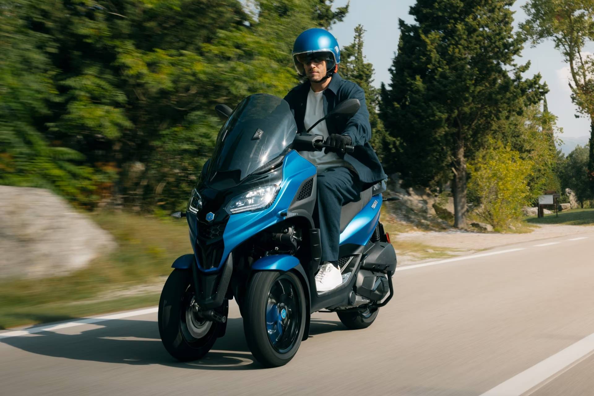 Model Piaggio MP3, který kombinuje propracovaný design a špičkové technologie, pokračuje v psaní příběhu nové mobility. Zcela nově definuje koncept skútru a rozšiřuje jeho agilitu. Exkluzivní technologie tří kol znamená, že každý stroj z řady Piaggio MP3 lze řídit s řidičským průkazem skupiny B, bez ohledu na model nebo výkon. Tato technologie přináší neuvěřitelnou ovladatelnost navrženou tak, aby si poradila s jakýmkoli typem silnice nebo provozu, díky čemuž je každá cesta bezpečnější a plynulejší.